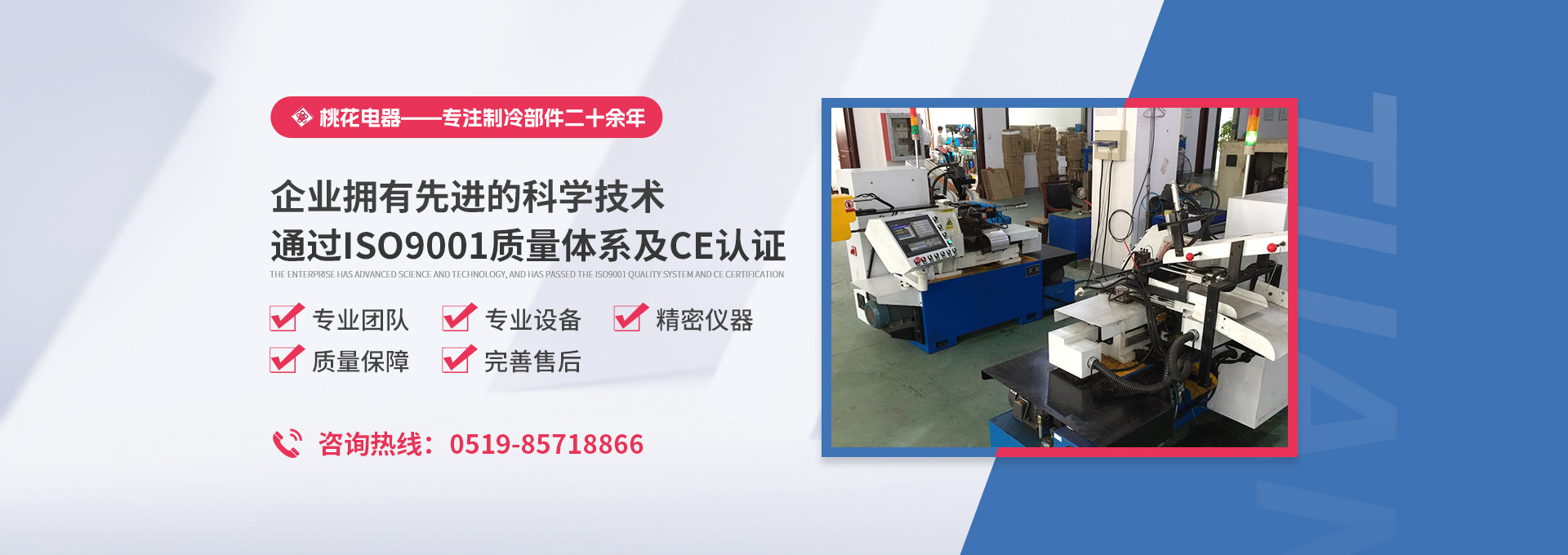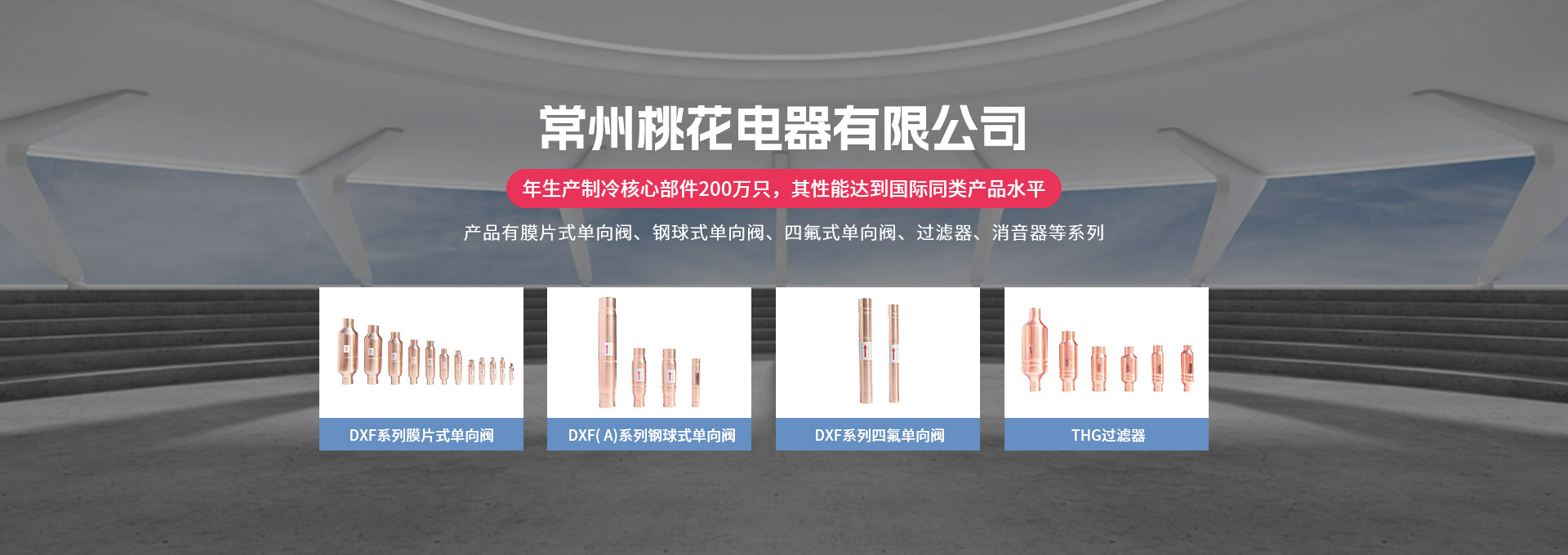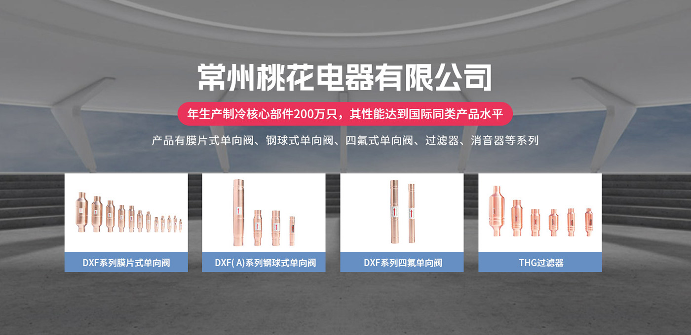常州桃花電器有限公司地處中國長江“金三角”之稱的上海至南京高速公路、城際高鐵、常州高新經(jīng)濟(jì)技術(shù)開發(fā)區(qū)路段,交通便利、技術(shù)力量十分雄厚。它是集研究、開發(fā)設(shè)計(jì)、制造和經(jīng)營制冷核心部件的企業(yè),主要生產(chǎn)中央空調(diào)上使用的制冷部件。產(chǎn)品有膜片式單向閥、鋼球式單向閥、四氟式單向閥、過濾器、消音器等系列。年生產(chǎn)制冷核心部件200萬只,其性能達(dá)到國際同類產(chǎn)品水平。  企業(yè)擁有先進(jìn)的科學(xué)技術(shù)、國際先進(jìn)的生產(chǎn)加工設(shè)備和精密的檢測儀器,并已通過ISO9001質(zhì)量體系及CE認(rèn)證,公司歷史悠久,2000年起,經(jīng)過長期積累、沉淀,經(jīng)驗(yàn)豐富,從而保證了產(chǎn)品的高質(zhì)量、高性能、高耐用性。企業(yè)產(chǎn)品在國內(nèi)外市場具有較高的知名度,深受眾多中外品牌制冷客商的好評。主要客戶有約克、麥克維爾、美的、開利、特靈、頓漢布什、清華同方、天加等.并出口北美、歐洲、東南亞等地區(qū)。  高品質(zhì)產(chǎn)品是企業(yè)的保證,周到服務(wù)是合作友誼的承諾,企業(yè)本著“求